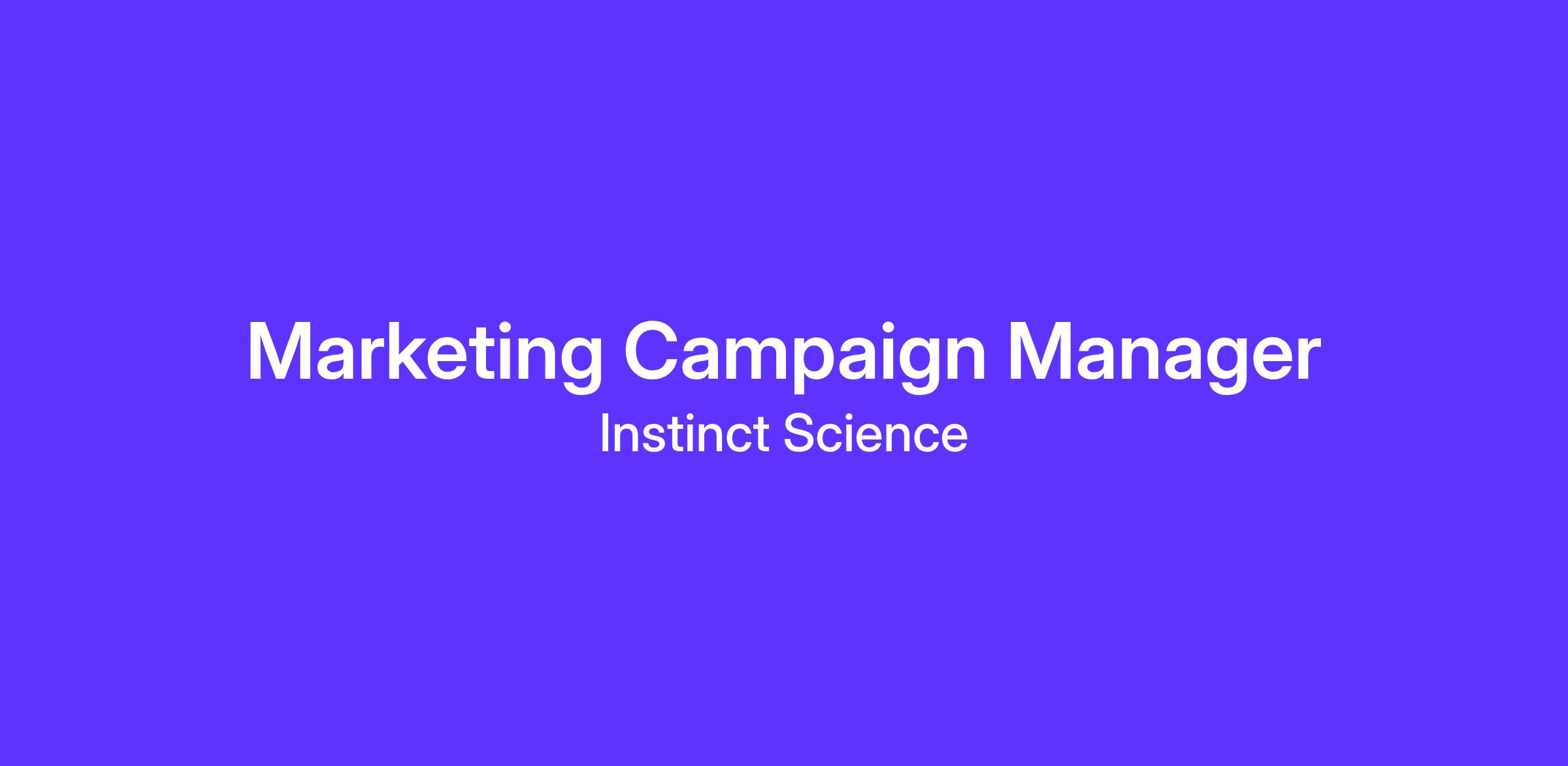 Instinct Science is looking for an experienced and motivated Marketing Campaign Manager to be responsible for the development, launch, and optimization of marketing programs to drive demand for Instinct software products. These programs are built across the entire buyer’s journey and are a comprehensive set of tactics including, but not limited to email campaigns, digital advertising, paid social, events, publications, associations, and partner marketing. The Campaign Manager will work with internal and external cross-functional teams to build campaign assets, execute programs, measure, and report on campaign effectiveness, and optimization for peak performance.